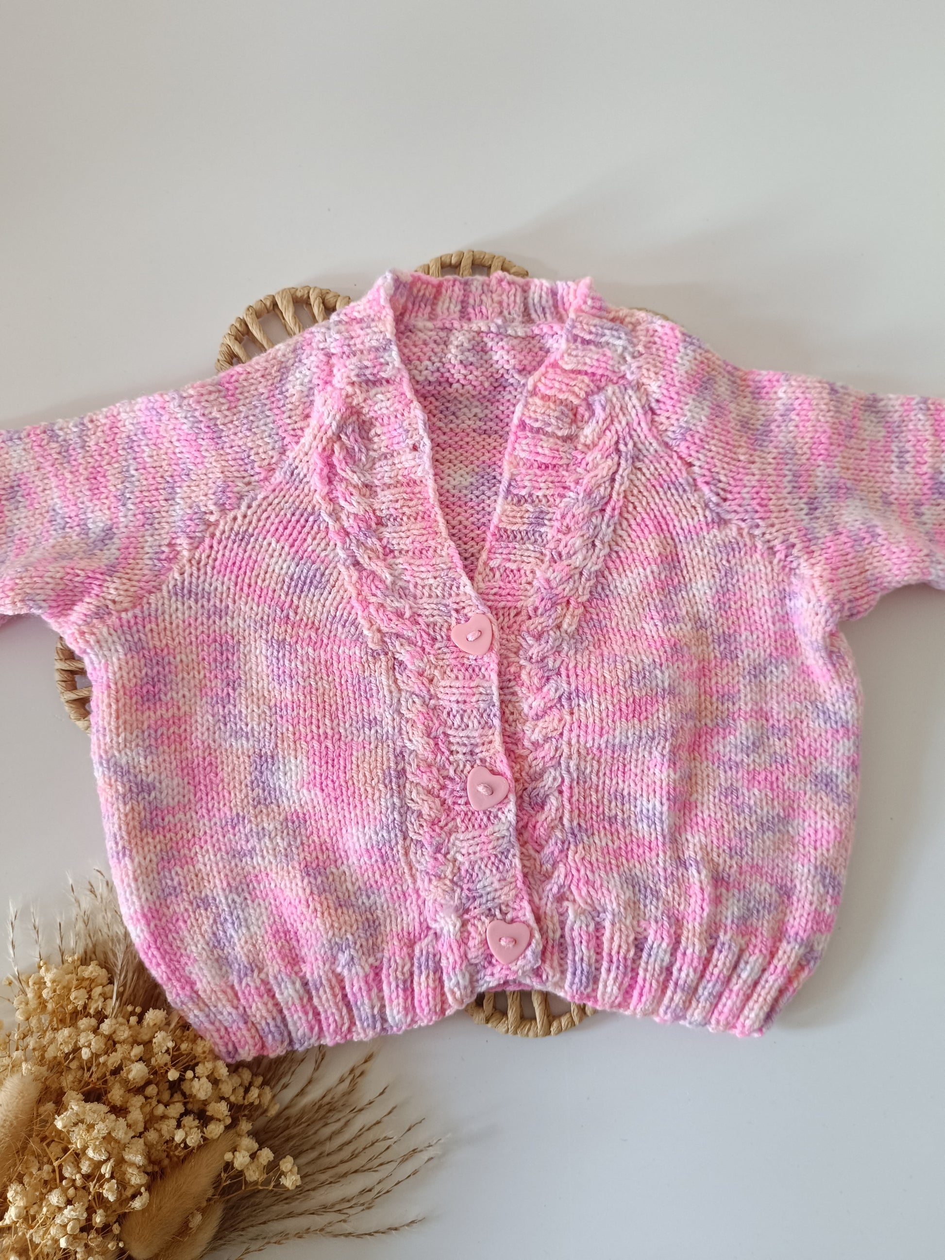 SALE 3-6m Hand Knitted Cardigan Pink Heart