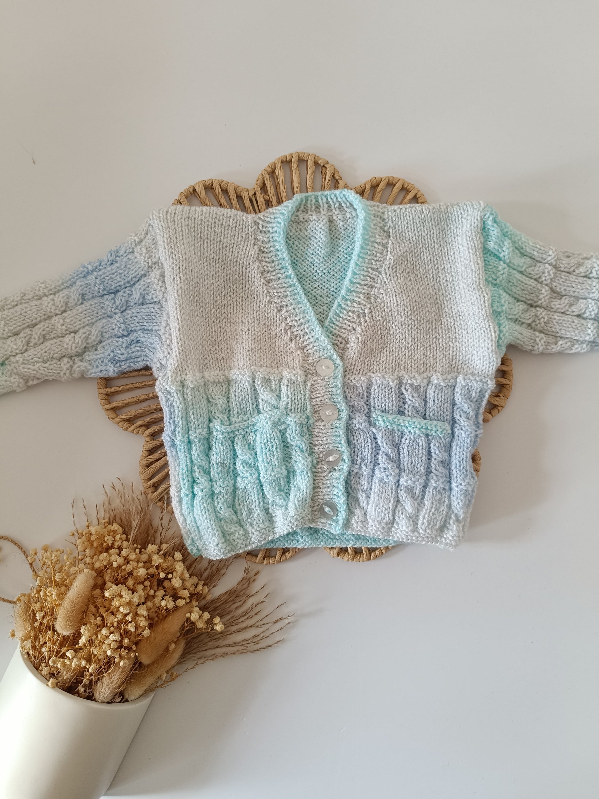 SALE 3-6m Hand Knitted Cardigan Blue Shades